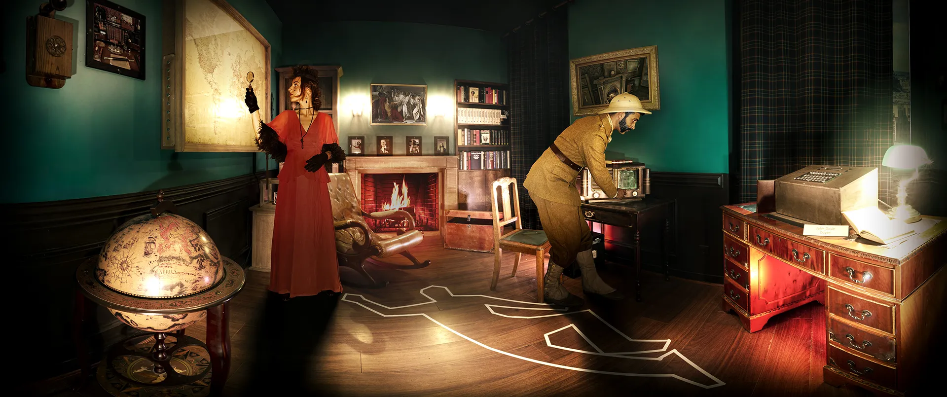 Dès votre entrée, vous êtes transportés dans une ambiance so british. Les pièces sont ornées de boiseries élégantes, de bibliothèques remplies de livres anciens et d'objets d'époque, recréant fidèlement l'atmosphère d'un manoir anglais. Chaque détail, du mobilier aux accessoires, est soigneusement choisi pour renforcer l'immersion et vous plonger au cœur de l'enquête.