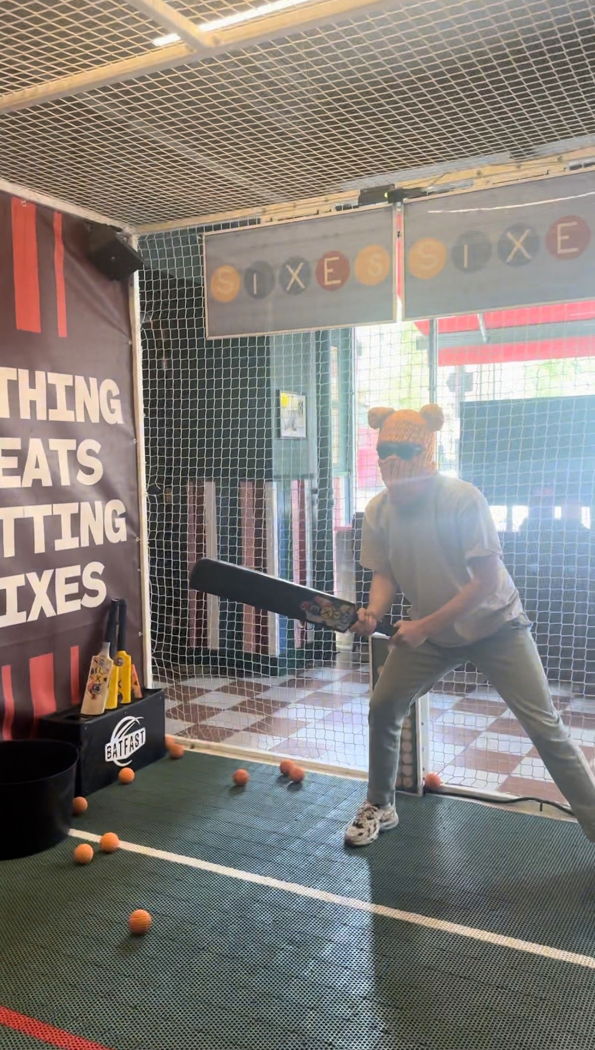 Tu entres dans un bar stylé, tu prends un verre, et tu t’essayes au cricket dans des cages numériques où l’on frappe de vraies balles lancées par une machine.