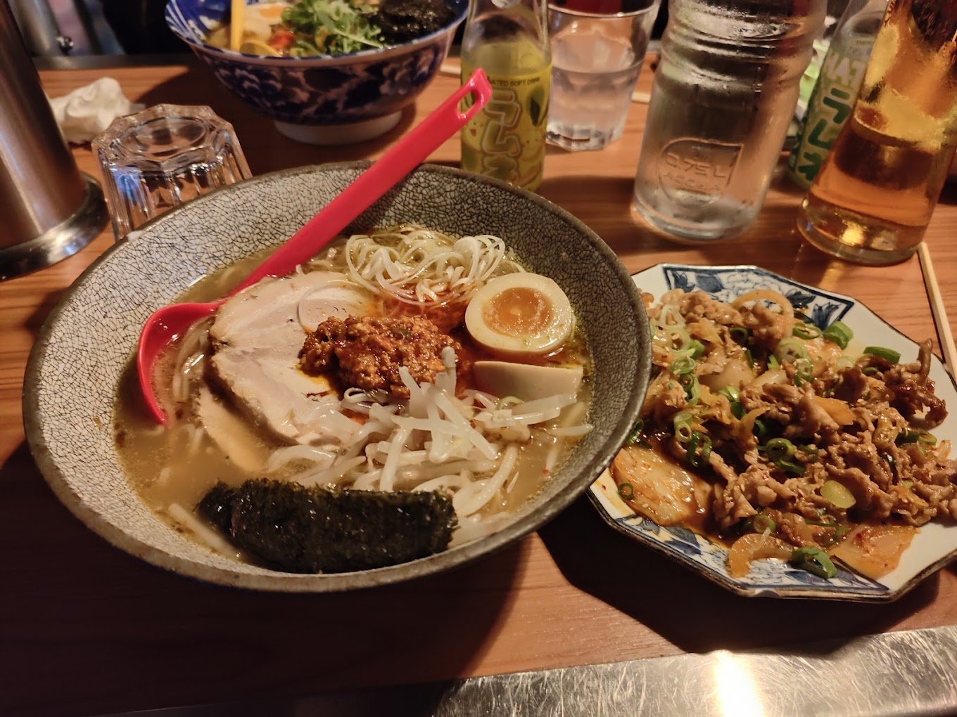 Isshin propose une expérience culinaire immersive centrée sur le ramen, spécialement le ramen Tonkotsu traditionnel de la région de Kyushu. La décoration du restaurant, qui inclut un portail Torii et des éléments de la culture japonaise, transporte les clients dans un voyage au Japon.